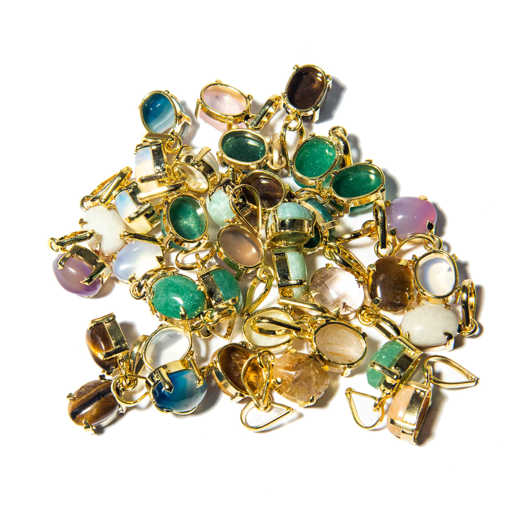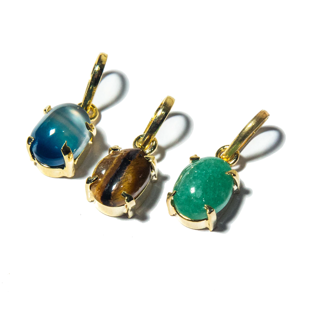 Um conjunto delicado, elegante e repleto de boas vibrações. Cada pingente traz uma pedra única, escolhida entre uma seleção especial de cristais naturais e sintéticos com forte apelo estético e energético. Com corte cabochão liso e montagem em garra dourada, esses pingentes são ideais para quem busca beleza natural, equilíbrio interior e um toque de espiritualidade no dia a dia.