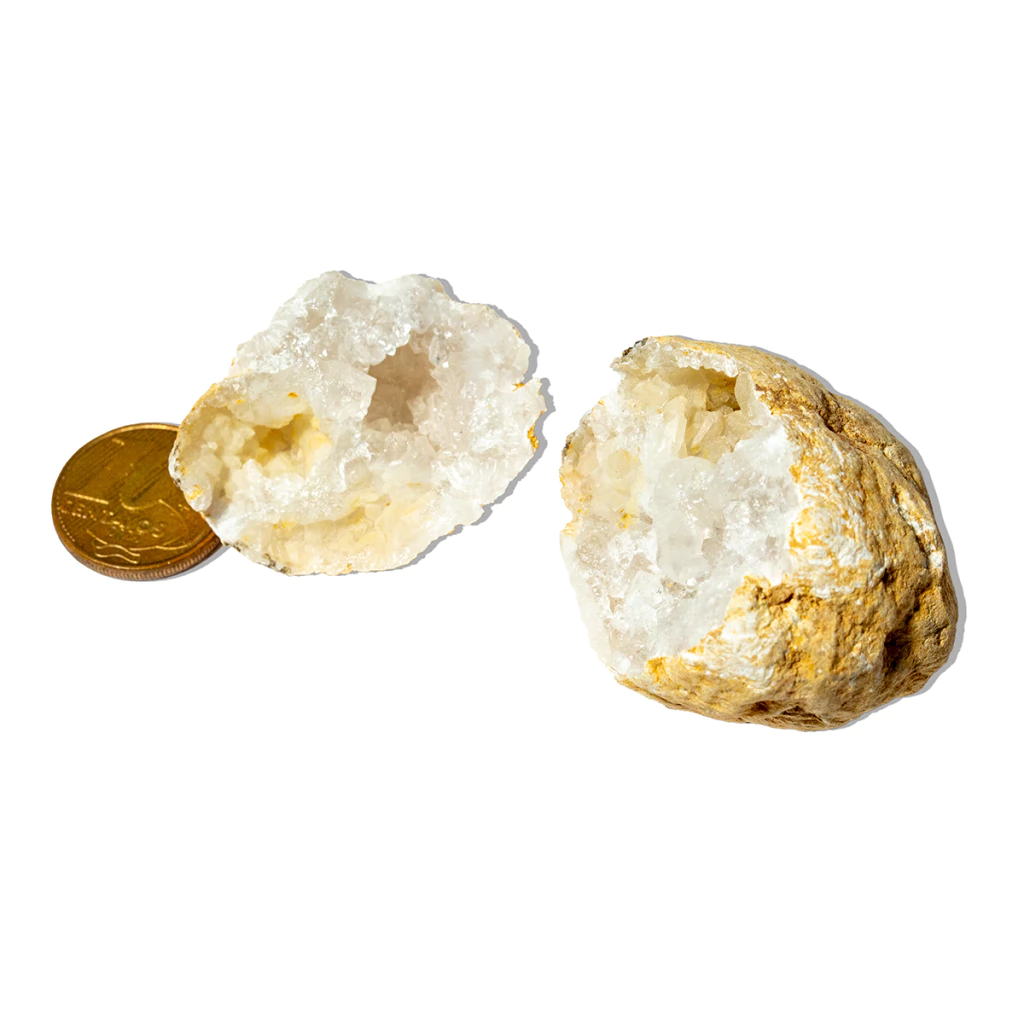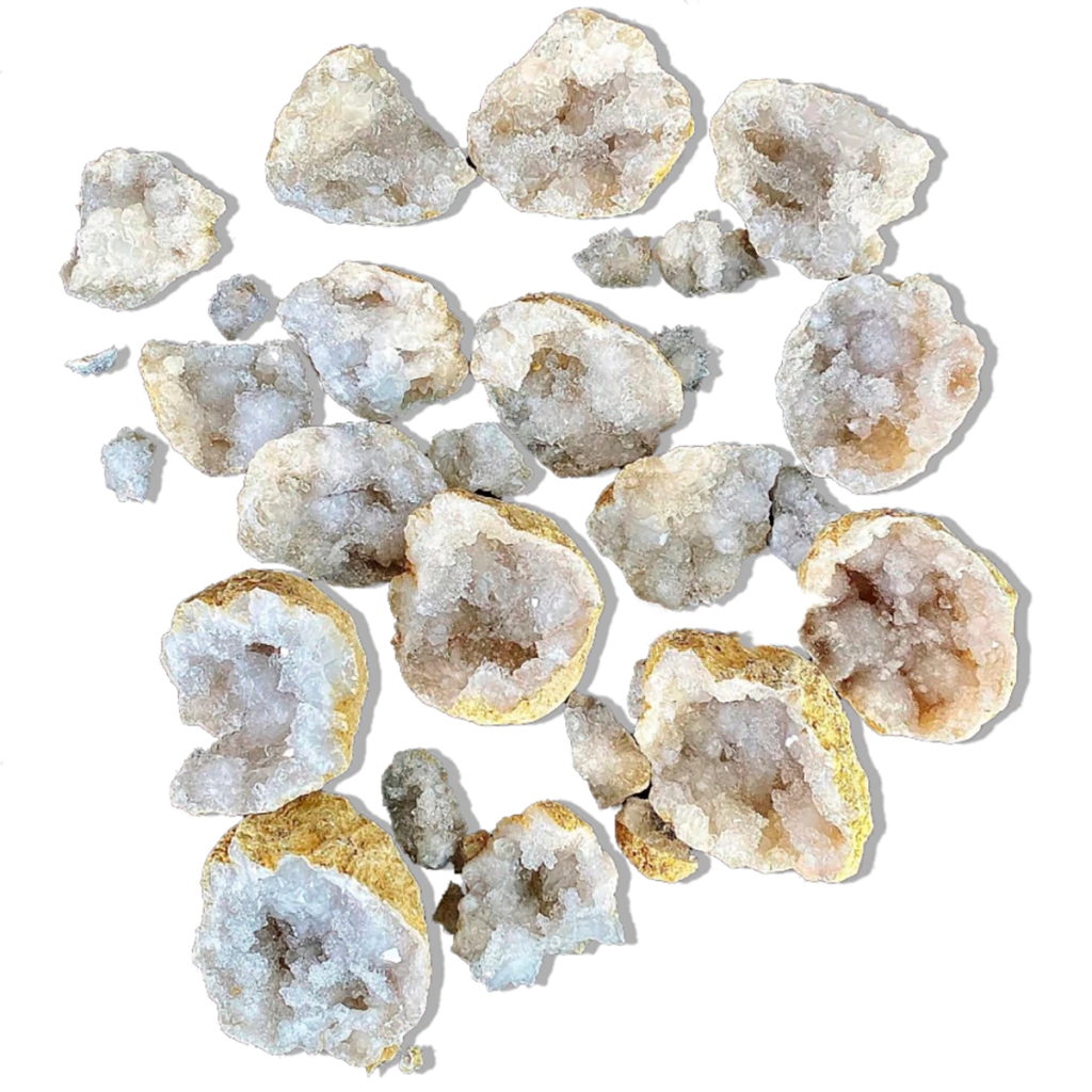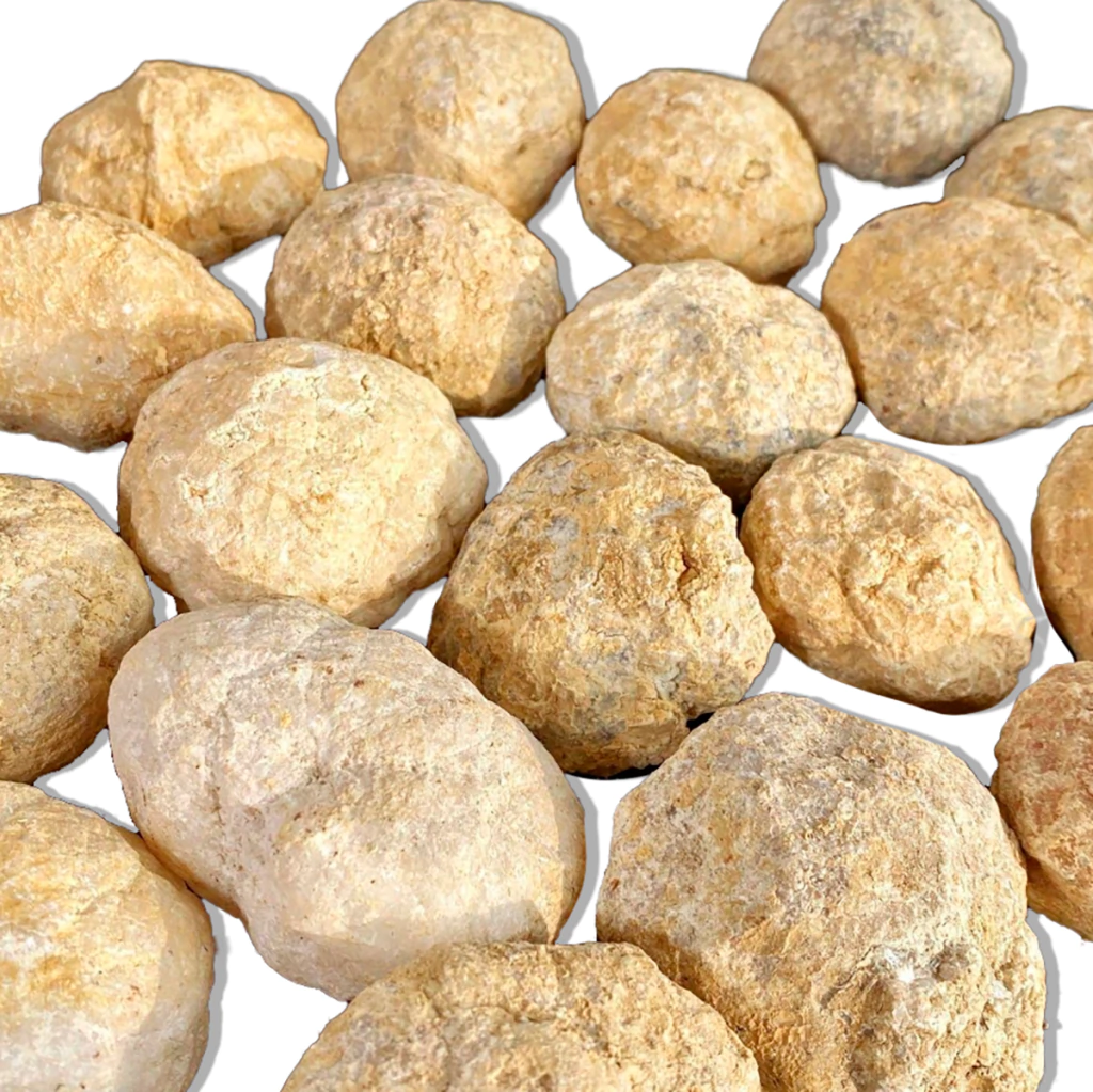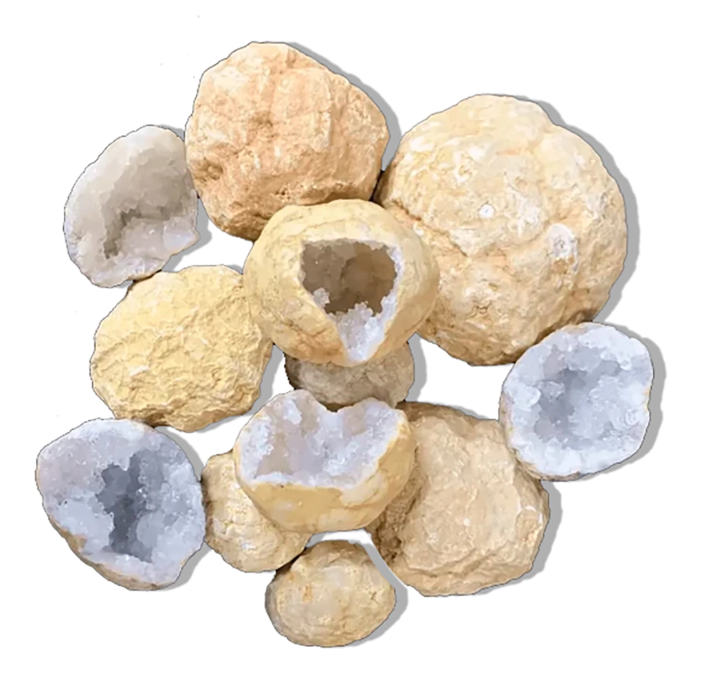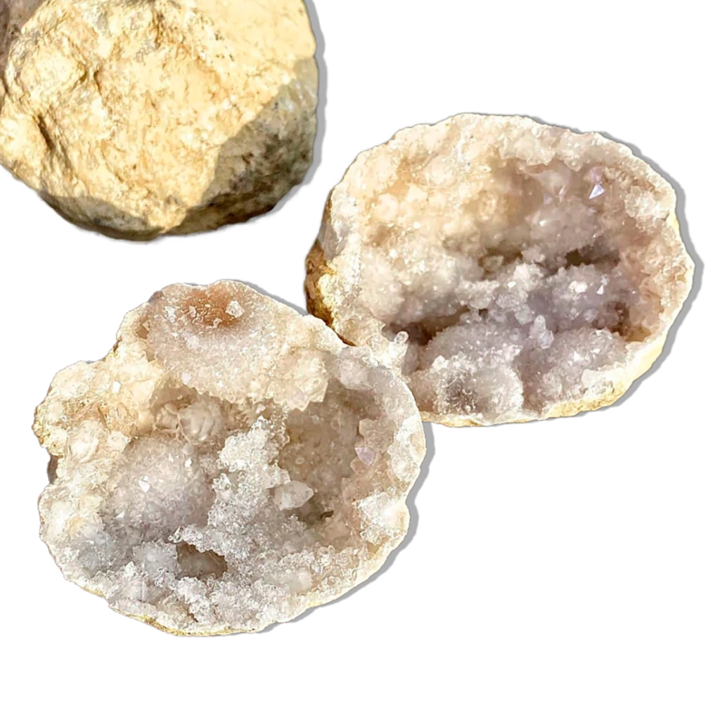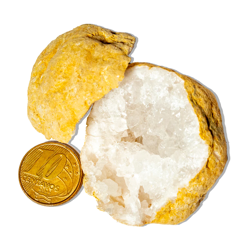 Mais do que simples pedras, os geodos fechados oferecem uma vivência mágica: você mesmo quebra cada geodo ao meio, revelando seu interior cristalizado de forma completamente natural e surpreendente. Cada peça é única — ninguém no mundo terá um igual ao seu!