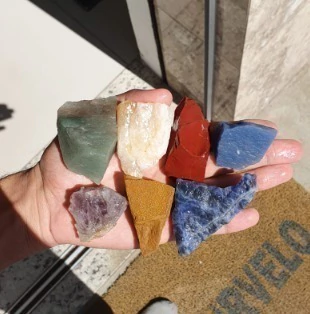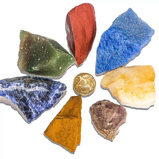 01 kit com 7 Pedras cores dos chakras a venda neste anúncio, pedras bruto pequena com tamanho aproximado de uma moeda com 20 a 30 mm cada pedra