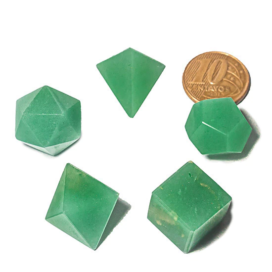 Kit solido de platão formas geometricas lapidado em pedra natural de garimpo com boa qualidade, Tetraedro, Hexaedro, Octaedro, Dodecaedro, Icosaedro ideal para coleção, estudo, presente, etc. Solidos de Pedra Quartzo Verde Lapidação Manual.