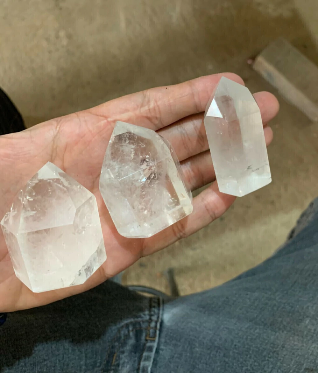 Lote 10 Pontas Cristal de quartzo lapidado gerador ou ponta de cristal lapidado pedras naturais Pacote com 10 pedras preço no atacado para revenda, lapidação sextavado conforme sai do garimpo Pedras Lapidadas