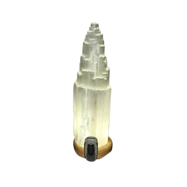 Luminária em formato de Torre de selenita Branca pedra Boa Qualidade, Bom Brilho e cristalização pedra natural Apenas com uma Torre entalhada no canudo e base de madeira onde se encontra uma lâmpada de led 60W bivolt 127/250v Ideal para se presentar ou linda decoração para sua casa, pois carrega todos os beneficios da selenitaSelenita é uma pedra de proteção, capaz de gerar um escudo energético protetor em torno do ambiente ou da pessoa que a tem em mãos No corpo físico, a pedra selenita atua removendo bloqueios na coluna vertebral e rejuvenescendo o corpo físico Pode ser usada para libertar entidades presas a Aura e impedir que a mente seja afetada por influências externas