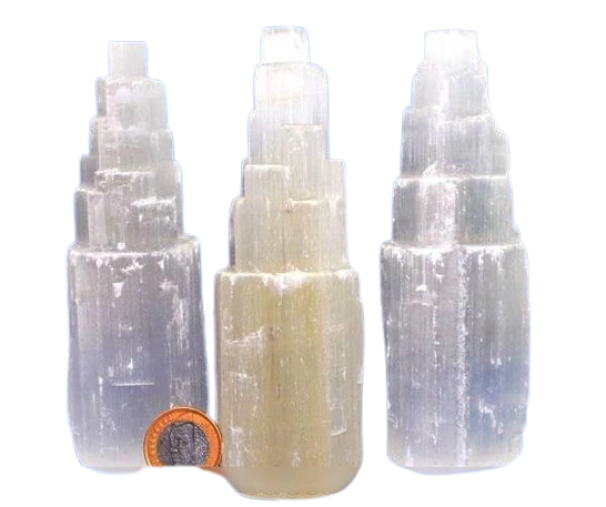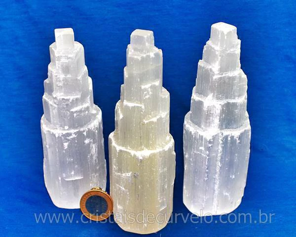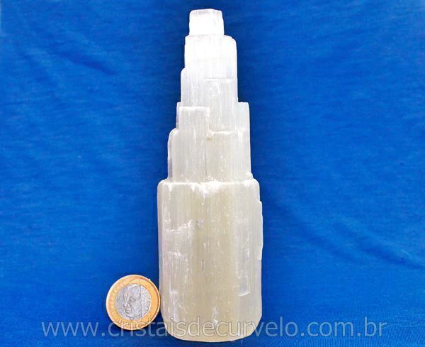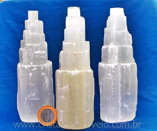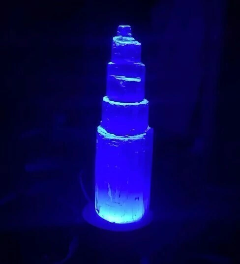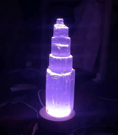Luminária Torre de selenita Branca pedra Boa Qualidade, Bom Brilho e cristalização pedra natural Apenas com uma Torre entalhados no canudo, luz led colorida. Pedra firmes branquinhos e ótimo tamanho já pronto para uso holistico.