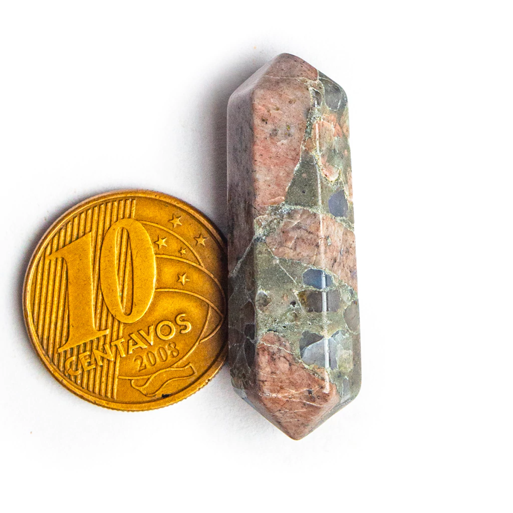 Mini Bi Terminado Riolita Rosa 25mm – Pedra Natural Sextavada