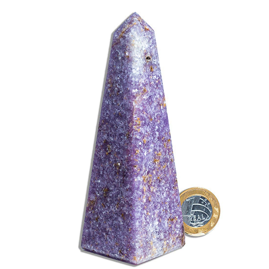Obelisco Lepidolita Pedra Natural Gerador Sextavado Lepidolita Mica mineral de cor Lilás ou Púrpura do grupo dos filossilicatos Pedra natural lapidada, gerador sextavado, para colecionador e para o uso no esoterismo, excelente brilho intenso