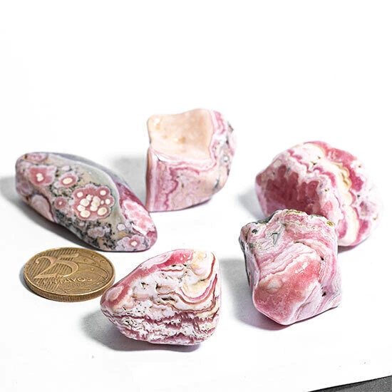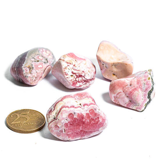 A rodocrosita é uma pedra sedimentar de carbonato de manganês, de cor rosa suave, associada ao amor próprio e ao chakra do coração.