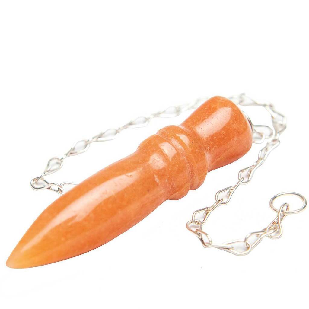 Pêndulo Egípcio de Quartzo Laranja Lapidado Manualmente - Brinde: Corrente Banhada a Prata com Tulipa Colada