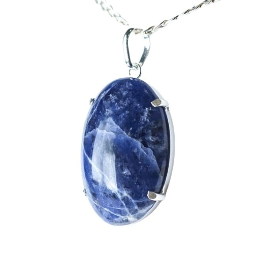 Realce sua elegância com o Pingente Cabochão Sodalita Azul Natural na Garra de Prata 950. Beleza autêntica em cada detalhe. Compre já o seu!