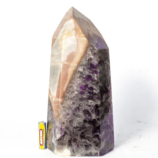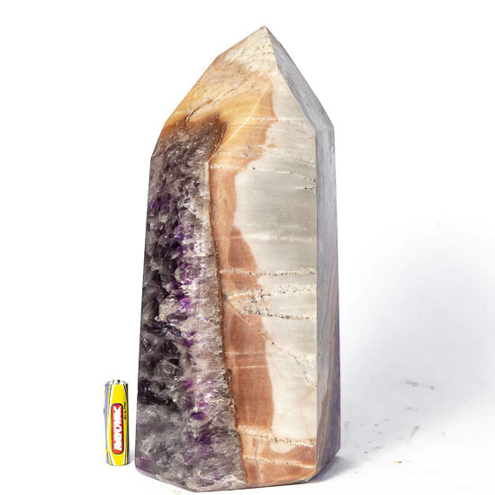 Ponta Ametista Baiana Grande 26cm Lapidado Gerador boa qualidade, Pedra extraida na região da Bahia com lapidação manual artesanal Corte sextavado em forma de gerador, 6 facetas laterais unidas em um ápice também sextavado, pedra com tom de roxo escuro natural Incrustado na matriz Ideal para coleção, enfeite de ambientes, esoterismo