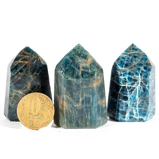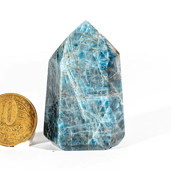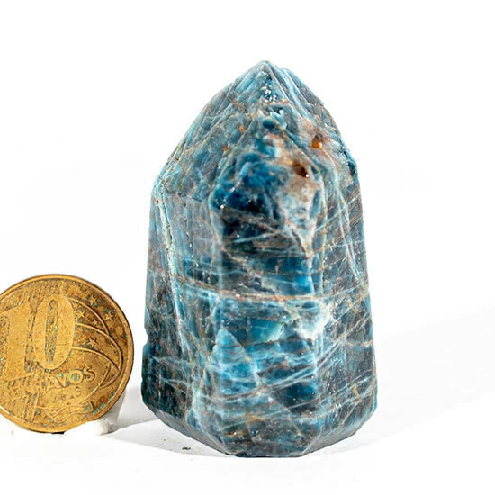 Ponta Apatita Azul Pedra Natural Sextavado 45mm Classe A. Ponta Apatita Azul lapidada sextavado em forma de gerador 6 facetas e cume também 6 facetas, pedra ideal para colecionadores, ou no uso do esoterismo A lapidação desta pedra é difícil de encontrar