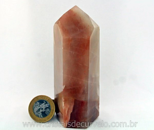 Pedra Aragonita Lapidado sextavado em forma gerador 6 facetas e cume também 6 facetas, pedra ideal para coleção ou uso esoterico, vermelho mel