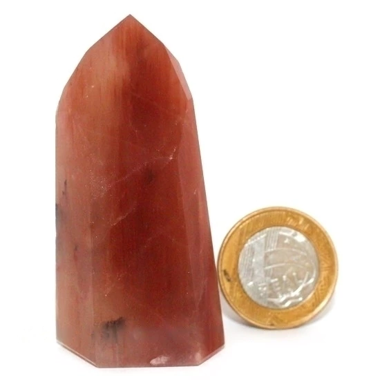 Ponta de aragonita vermelha, brilhante e vibrante, encantando com sua beleza natural. Ideal para decorar ambientes ou para proteção!