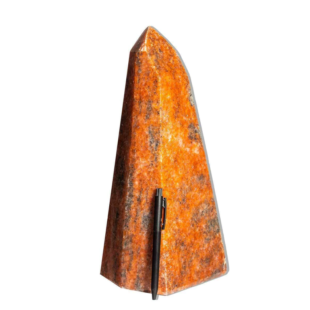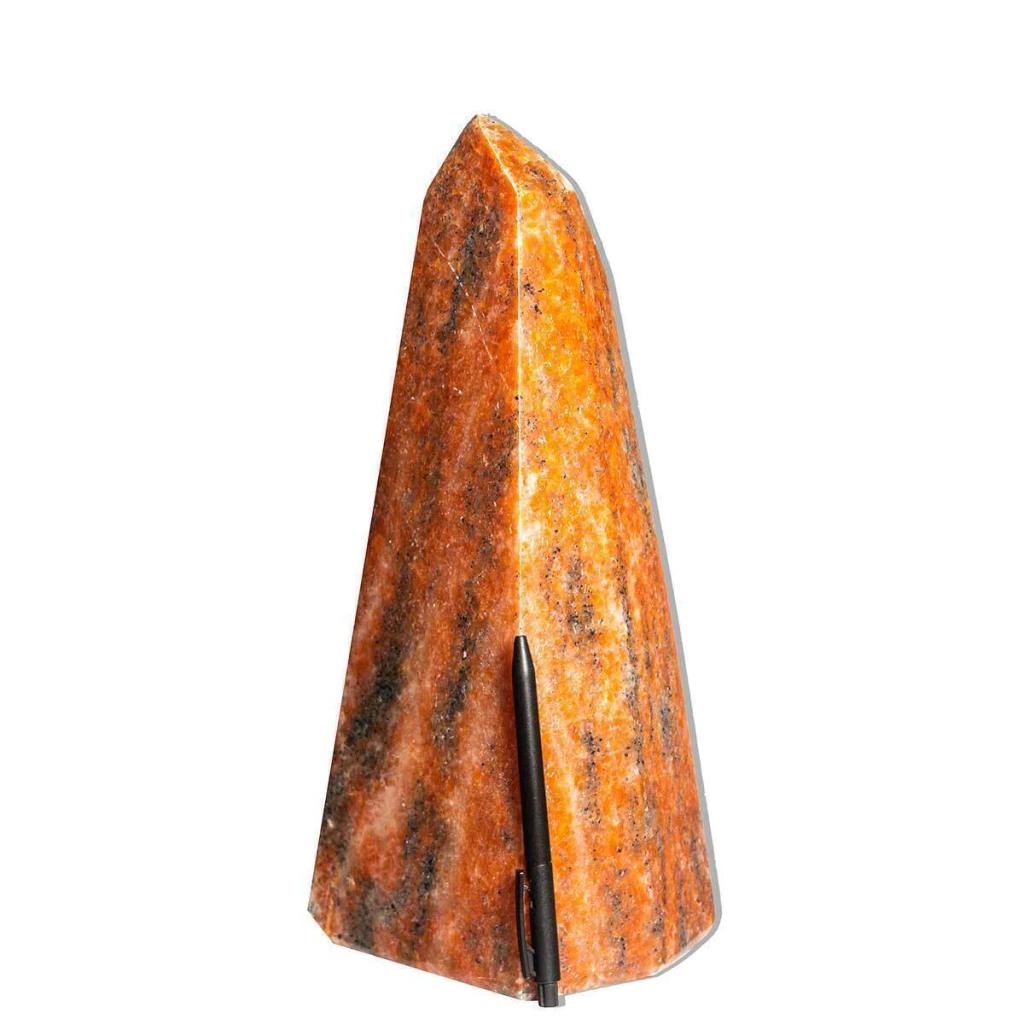 Aprecie a beleza única da Ponta de Pedra Calcita Laranja, com suas cores vibrantes e energizantes, perfeita para adicionar um toque de cor e energia a qualquer ambiente!