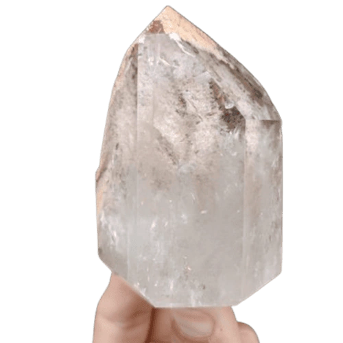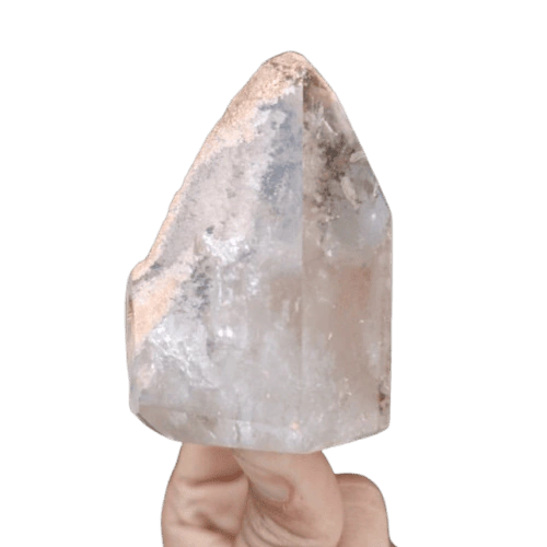 Ponta Cristal com Inclusão de Lodolita e Arco-íris bruto natural de garimpo sem lapidação.