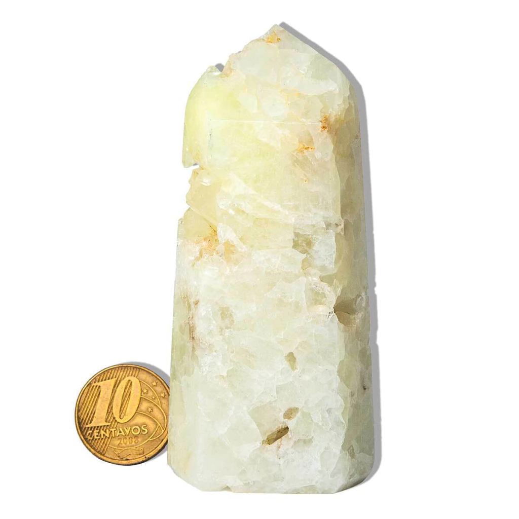 Adicione um toque de singularidade e sofisticação ao seu espaço com esta peça única de Quartzo com Enxofre Natural, cuidadosamente lapidada à mão no formato gerador sextavado. Seu visual marcante em tons amarelos intensos atrai olhares e é ideal tanto para composição de ambientes quanto para práticas de bem-estar.