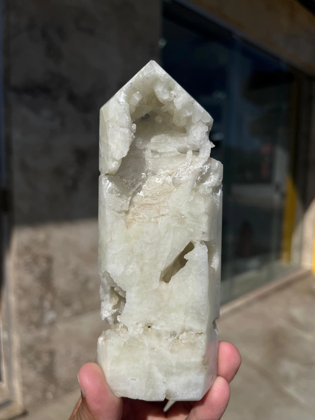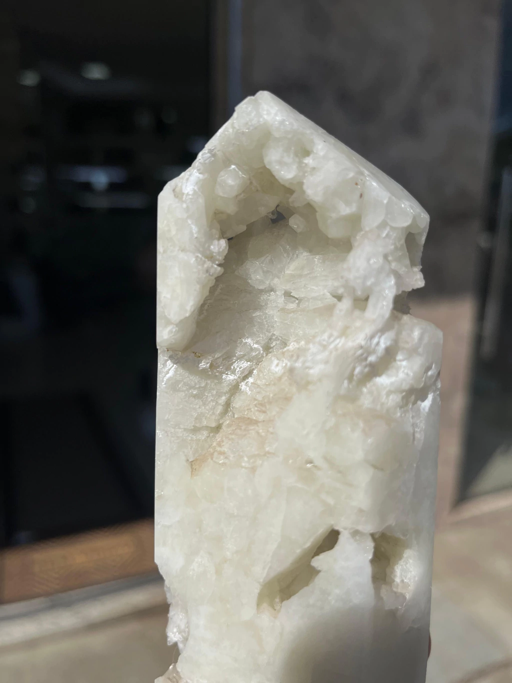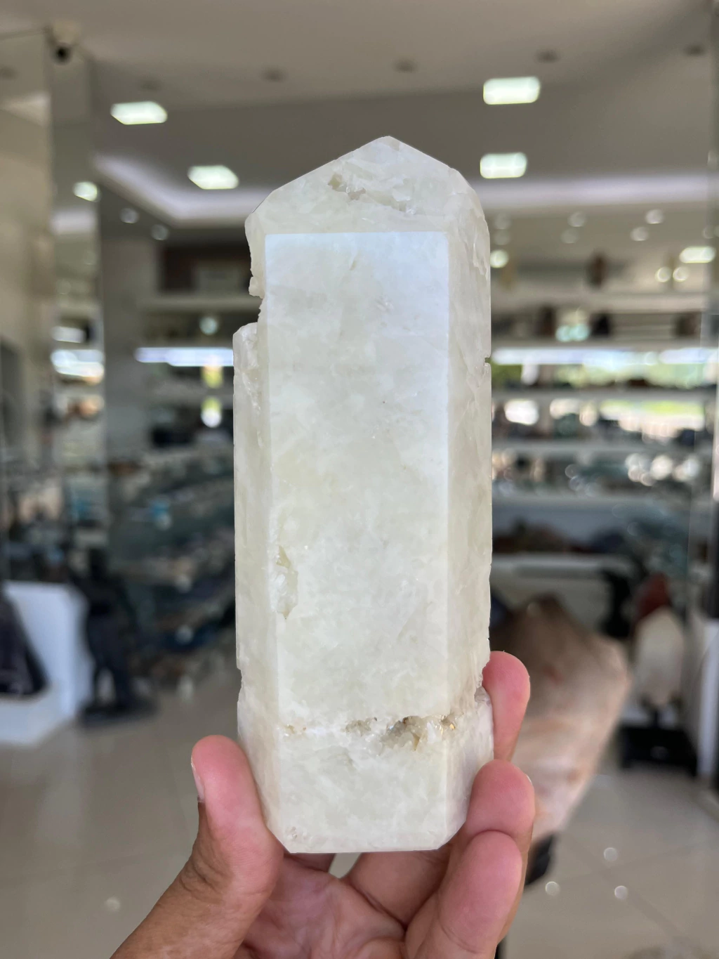 LEIA ANTES DE COMPRAR Ponta Sextavado com marcas no corpo, geodos da pedra natural, foi aproveitado a maior quantidade desta peça bruta para fazer o cristal gerador, por isso apresenta alguns geodos mas nada que inultileze a ponta, além disso cria um belo ornamento Pedra da maneira que foi descrita só compre se concordar com isso
