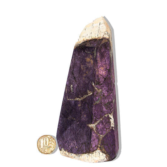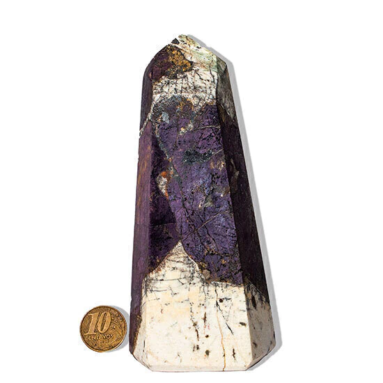 Descubra a beleza da purpurita natural de Ponta de Pedra - uma pedra única que irradia tons deslumbrantes de roxo e branco. Adquira já!