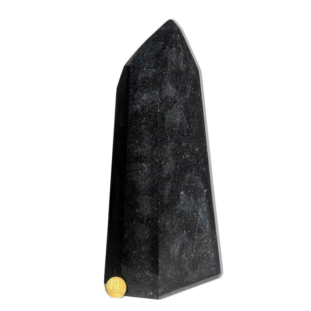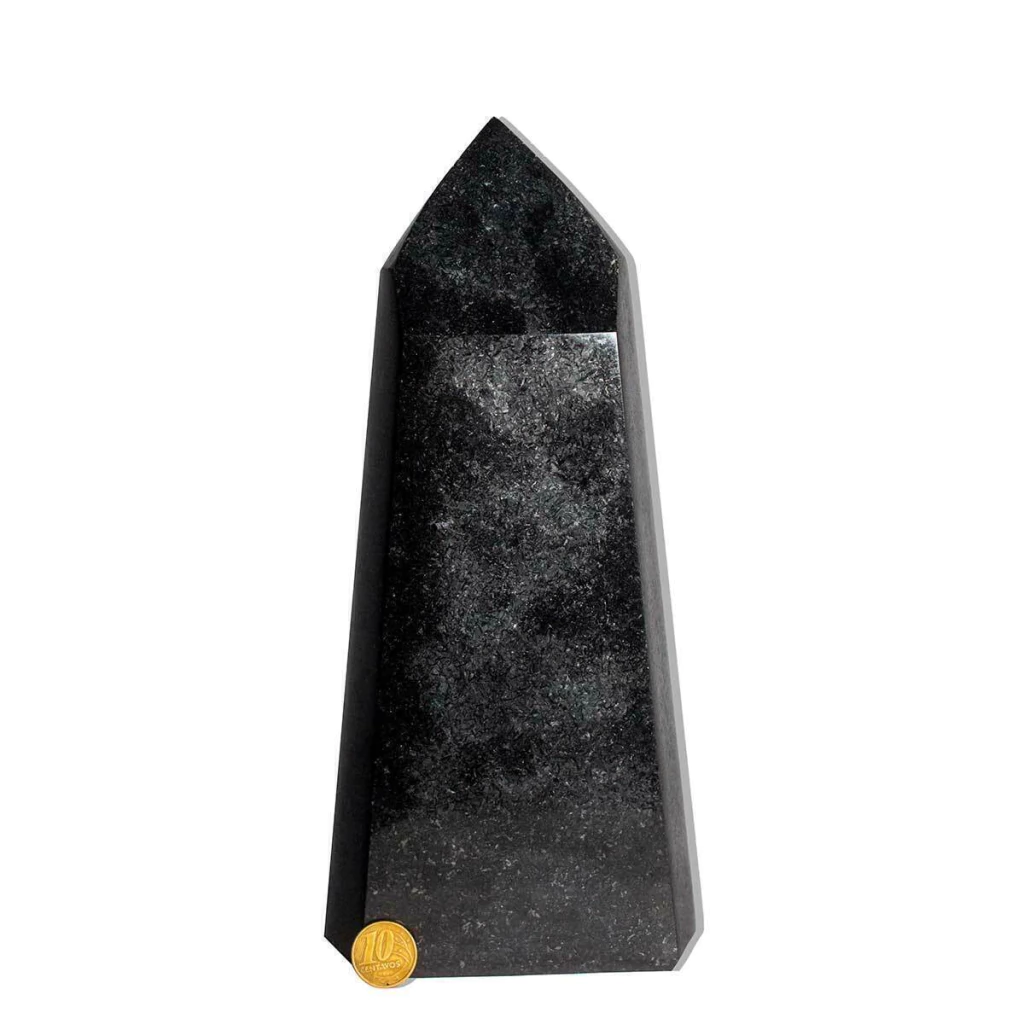Esta ponta de quartzo preto apresenta um tom intenso e profundo de preto, composta principalmente por sílicadióxido com cálcio. Além de sua beleza natural, ela é altamente valorizada no campo esotérico, sendo eficaz para eliminar energias negativas e proteger contra o mal olhado, Parecido à turmalina preta. Ideal para colecionadores, decoração de ambientes ou práticas esotéricas, essa pedra é proveniente de garimpos no Brasil, mais especificamente da Bahia.