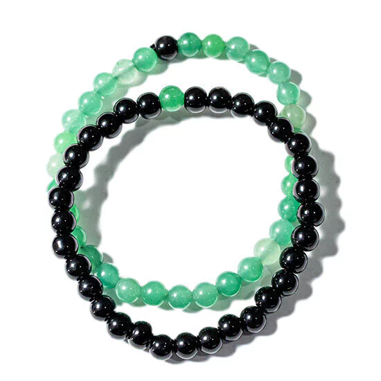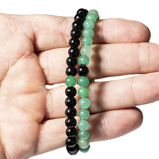 Pulseira Pedra Obsidiana Negra e Quartzo Verde Para Casal Bolinha 6 milimetros lapidado e ótimo Brilho, a montagem com furos ao meio da pedra unidas por fio silicone o que possibilta varias medidas de usuários, além de fácil reparo ou ajuste basta trocar o silicone e diminuir alguma pedra. Uma pulseira completa a outra, uma totalmente na pedra Obsidiana Negra e uma Bolinha Quartzo Verde a outra totalmente em Quartzo Verde e uma Unica Bolinha Obsidiana Negra.