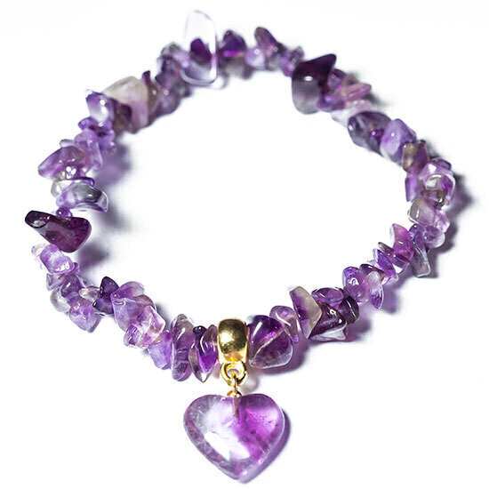 Pulseira Mini Coração Pedra Ametista Cascalho Fibra Silicone, Pulseira Cascalhos de Pedrinhas roladas de Quartzo Ametista Com Mini Coração 15mm Penduricalho, ótimo Brilho, pedra genuina, mineral autêntico de garimpo, a montagem do coração pino e presilha dourado e montagem com furos ao meio da pedra unidas por fio silicone o que possibilta varias medidas de usuarios, além de fácil reparo ou ajuste, basta trocar o silicone e diminuir alguma pedra para uso infantil. Presente Ideal para todas as idades, ou mimo para seu próprio uso.