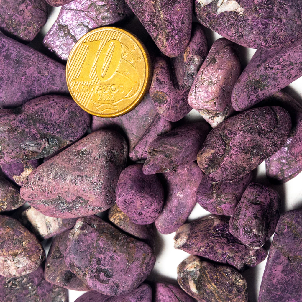 200G Purpurita Pedra Natural Rolada 18mm Pequena Para Orgonite, Pedra de garimpo comum qualidade de cor, ideal para uso esoterico e para se montar orgonites, com lapidação em máquinas de rola com excelente brilho.