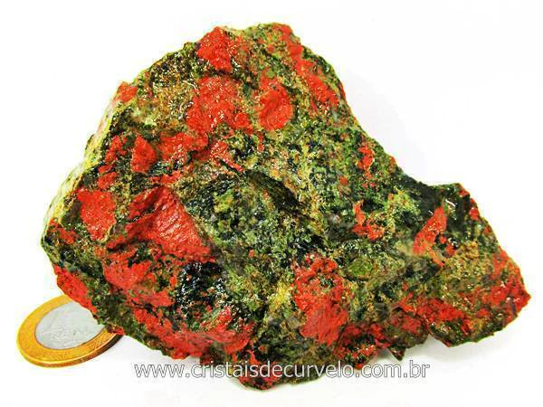 A composição dessa pedra é de Epídoto verde com Feldspato rosa, Cálcio, Alumínio, Ferro, Sílica com cromo e enxofre