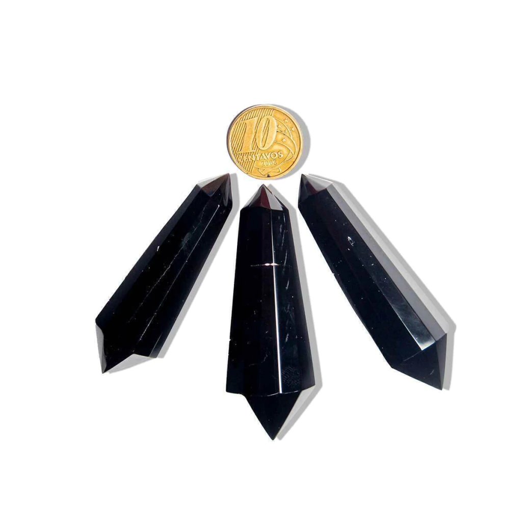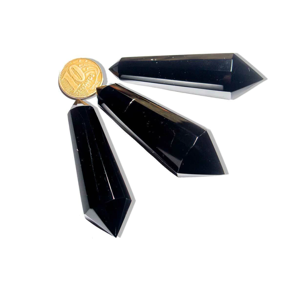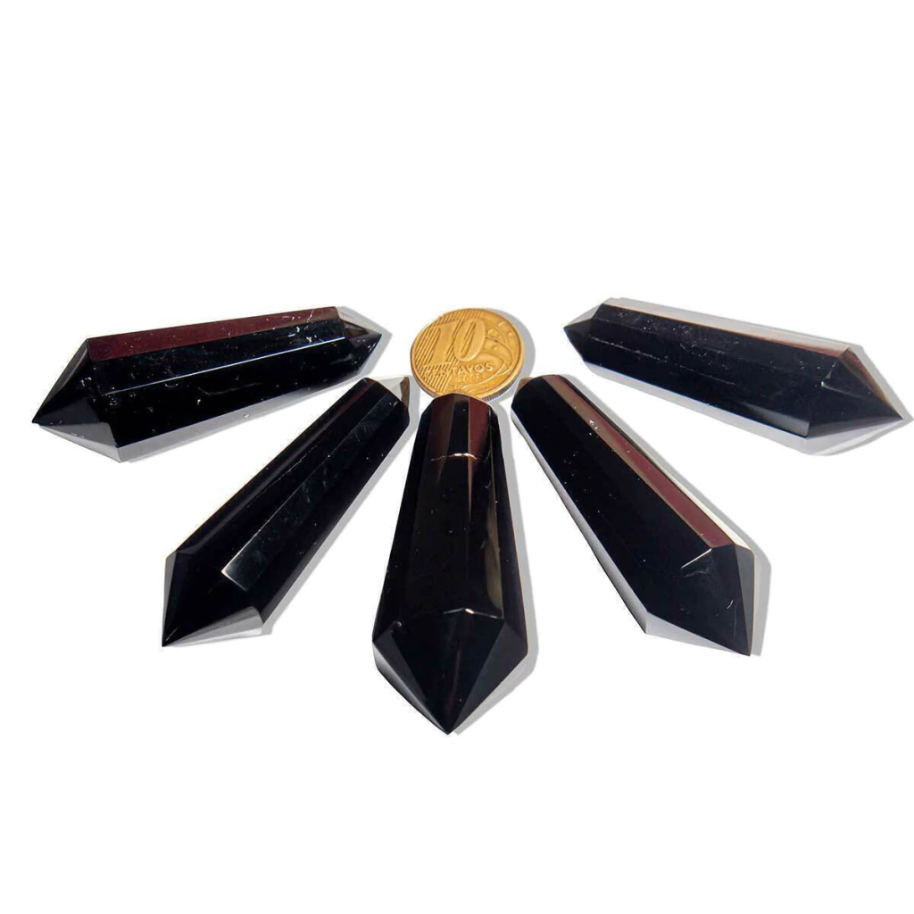 Vogel Bi-Terminado em Obsidiana Negra – Lapidação de 12 Facetas com Dupla Ponta