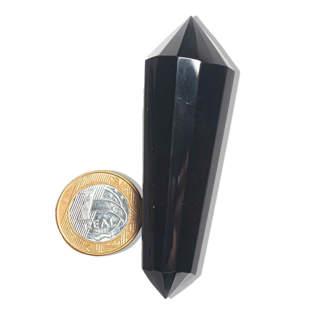 Vogel Bi-Terminado em Obsidiana Negra – Lapidação de 12 Facetas com Dupla Ponta