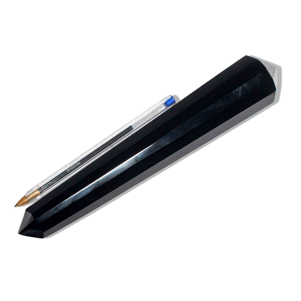 Vogel Bi-Terminado em Obsidiana Negra – Lapidação de 12 Facetas com Dupla Ponta